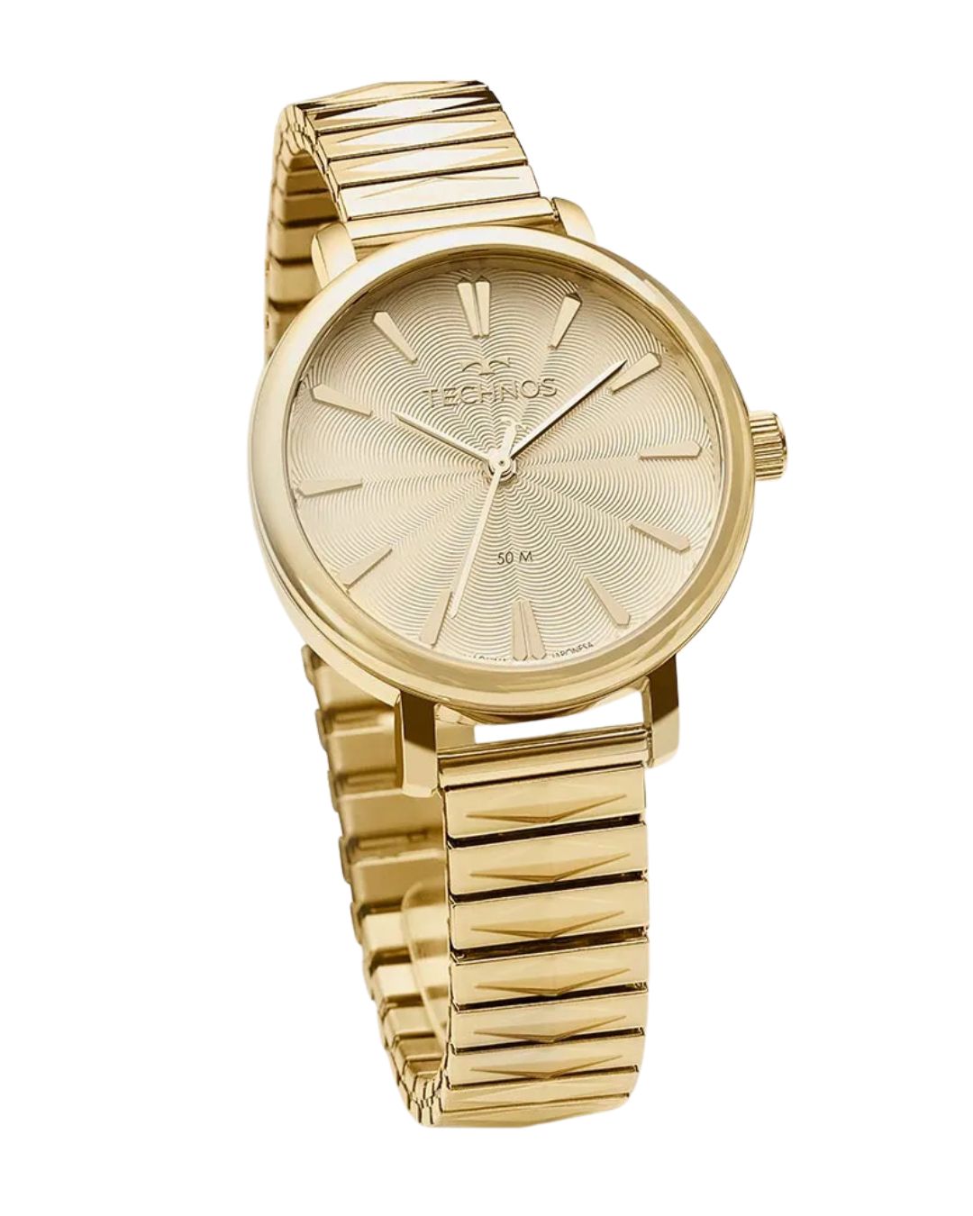 Equipado com movimento quartzo japonês, o Technos 2036MSJ/1D apresenta funcionamento analógico simples e preciso. O vidro usado é cristal mineral, oferecendo resistência à riscos leves e mantendo a clareza do visor. Com resistência à água de até 5 ATM (50 m), o modelo suporta respingos, chuva leve e lavagem das mãos com segurança.